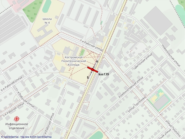 Ленина ул., напротив д.100б, за ост."Площадь архитектора Рыбниковой", в районе Костромского политехнического колледжа, справа при движении в центр