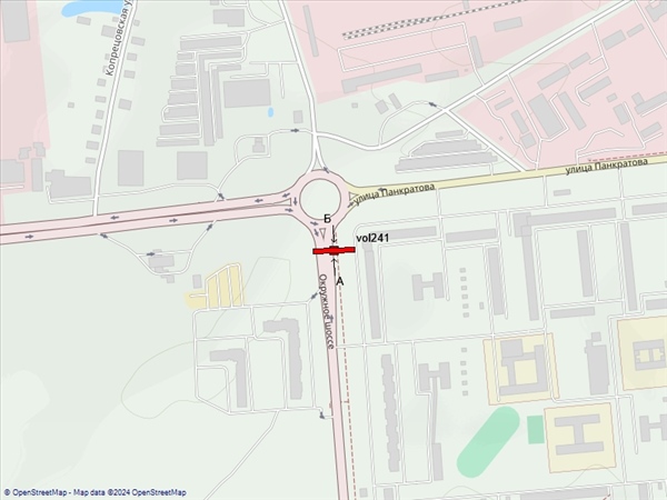 Окружное шоссе, в районе пересечения с Ленинградским шоссе и ул.Панкратова, справа при движении из города (Санкт-Петербургское направление)