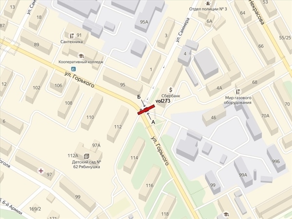 Горького ул., перед пересечением с ул. Саммера, справа при движении к ул. Чернышевского