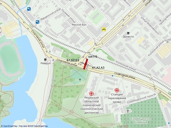 Спортивная ул., поворот на путепровод и ул. Есенина, 400м до Центрального СК, справа при движении в центр