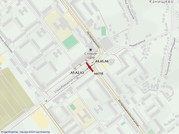 Станкозаводская ул., 28/9, в районе пересечения с ул.Интернациональной, разделительная полоса (А1-А3 - из центра, А4-А6 - в центр, к Московскому шоссе)