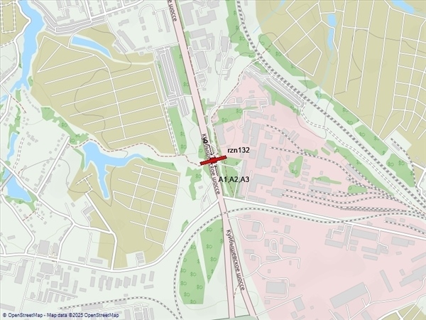 Куйбышевское шоссе, в районе д.31, перед поворотом к ост."Рязцветмет", справа при движении в центр (сторона Б - выезд из города, 100м до АЗС"Роснефть")