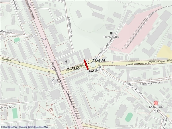 Спартака ул., 7, разделительный островок, стороны А1-А3 - при движении от Шереметевского пр-та, А4-А6 - к Шереметевскому пр-ту